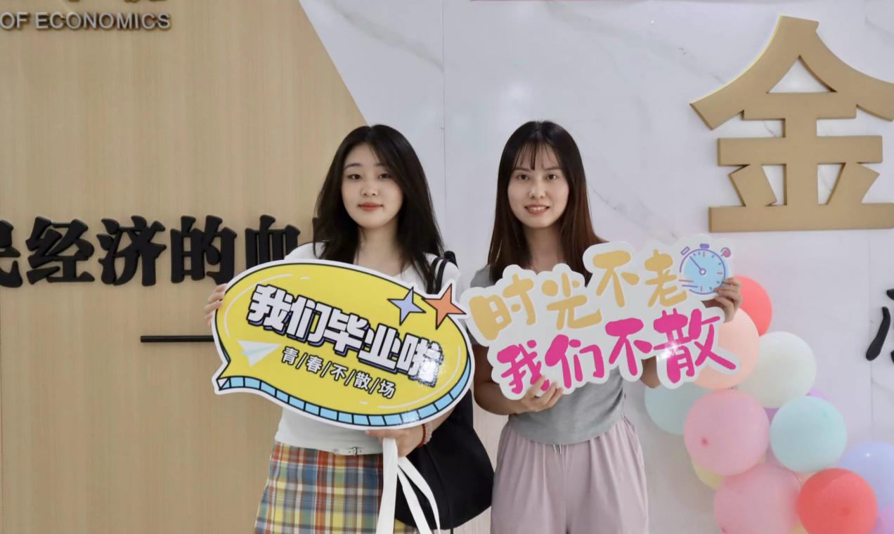 活动现场,气球、彩带迎风摇曳,水果、甜点四溢飘香,毕业生在品味美食的同时分享了校园难忘时光,表达了对母校的感恩之情和对美好未来的向往。在冷餐会现场外,公司精心布置了场景,让前来的学子留下与母校的合影。