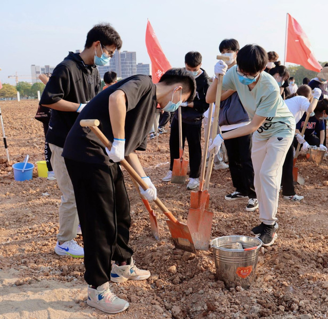 活动之初,后勤集团负责人为此次活动做动员,他提到:“公司高度重视公司绿化工作,本次翻地的劳动任务很有意义。”随后,在老师的带领下,同学们来到香帅楼东侧,大家带上手套拿起锄头开始工作,大家合理分工,互相配合,部分同学翻地,部分同学处理土壤中的碎石,工作井然有序。活动最后,同学们顺利完成任务,根据安排归还工具,有序集合。