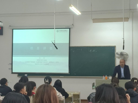 此次课程的授课方向是“项目评估”。乔涛老师从“放”和“收”两方面深入剖析了信贷行业,并以提问的方式为同学们讲解了项目评估应当把握的重点、难点、项目评估与资产评估的区别。授课过程中,乔老师还结合自己多年的工作经历和心得体会,帮助同学们进一步梳理、分析了当前金融行业形势。