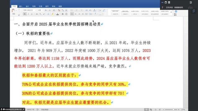 (图为姚璐璐老师强调秋招的重要性)