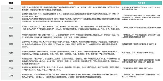 此外,诸多城市均针对CFA持证人设置了人才引进或福利政策,以下是部分城市政策信息: