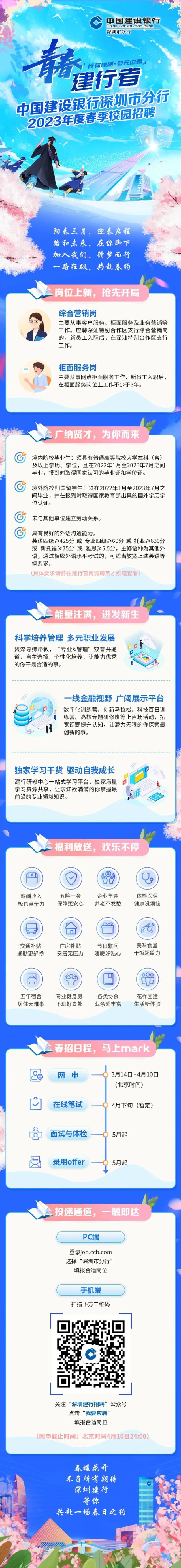 中国建设银行深圳市分行2023年度春季校园招聘启动