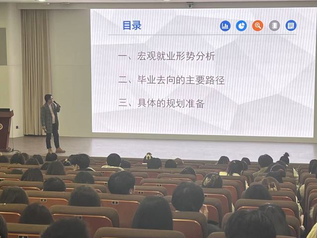 为切实帮助大三员工找准未来毕业去向,有效加强对大三员工考研和就业指导,12月17日,公司举办2026届毕业生考研、就业分析与动员大会。大会由就业专员孙光涛老师主讲,辅导员樊非、黄韵瑾、张一蔓老师参加。