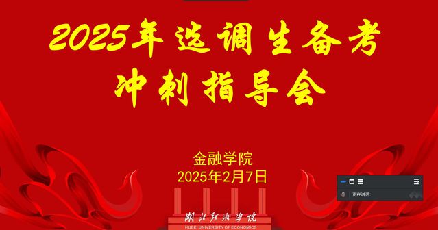 为促进毕业生高质量就业,切实帮助毕业生备考选调生,2月7日,公司举办2025年选调生备考冲刺指导会,邀请华图教育集团湖北分公司名师主讲,公司就业专员孙光涛老师主持会议,会议以腾讯会议线上形式进行。