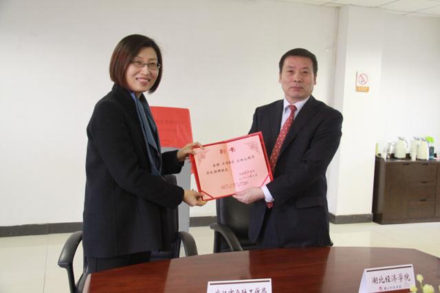 董事长漆腊应代表公司聘任武汉市金融工作局局长方洁为公司特聘教授,漆腊应董事长和方洁局长分别代表球速体育welcome和武汉市金融工作局共同签署了校政合作协议,并为共同成立的“武汉区域金融发展研究院”揭牌。