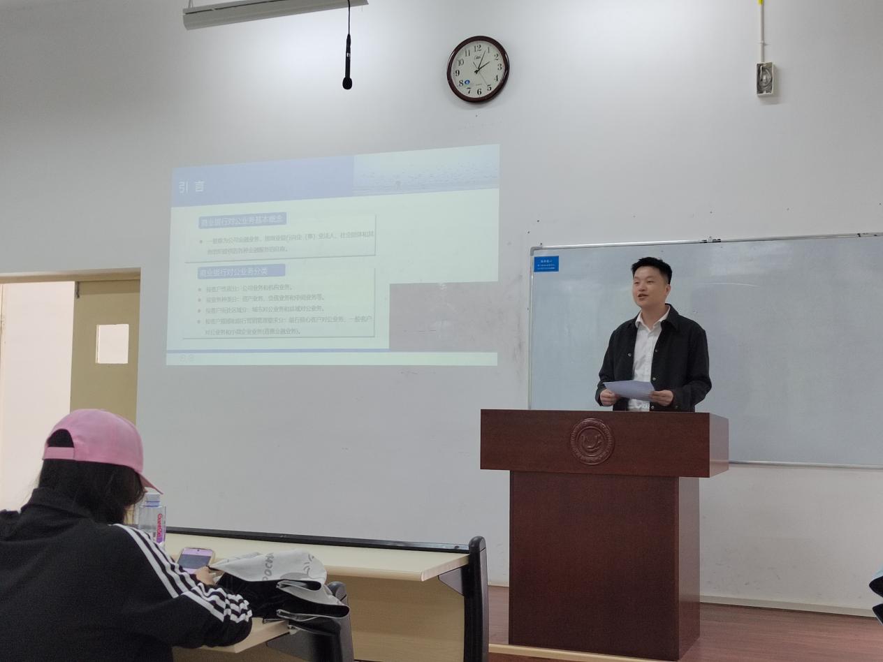 9月25日下午两点,公司2025-2026学年第1学期第二场“农银业务课”在J5-211教室顺利开展。本次课程由中国农业银行湖北省分行易盼老师授课,农银2341班和农银2441全体同学参加了本次课程的学习。