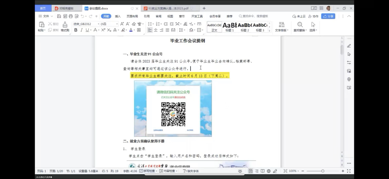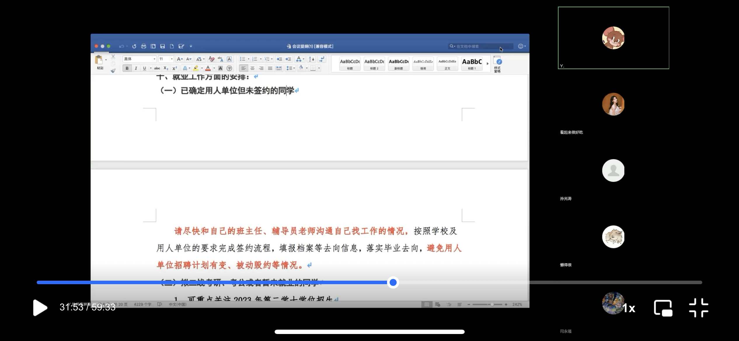 (本网讯 通讯员 姚璐璐)为做好毕业生的教育、引导、服务工作,确保毕业生安全、文明、顺利离校,我院于6月8日晚19:00组织开展2023届毕业生离校集中晚讲评。此次班会采取线上腾讯会议的方式进行,班会由球速体育就业专员及辅导员老师孙光涛、姚璐璐主讲,2023届11个毕业班级的全体毕业生参加了会议。