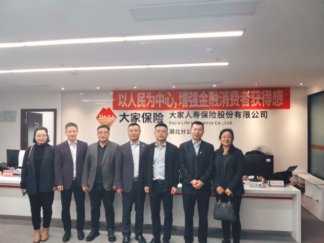 4月14日,公司党委副书记高师、副经理李正旺、保险系主任孔月红、就业工作专员杨亚娟一行四人赴大家人寿保险股份有限公司湖北分公司(以下简称大家人寿湖北分公司)开展走访调研,并就后续校企合作事宜进行了洽谈交流。大家人寿湖北分公司负责人何琼、副总经理吴兴刚及相关人员参加了此次洽谈交流活动。