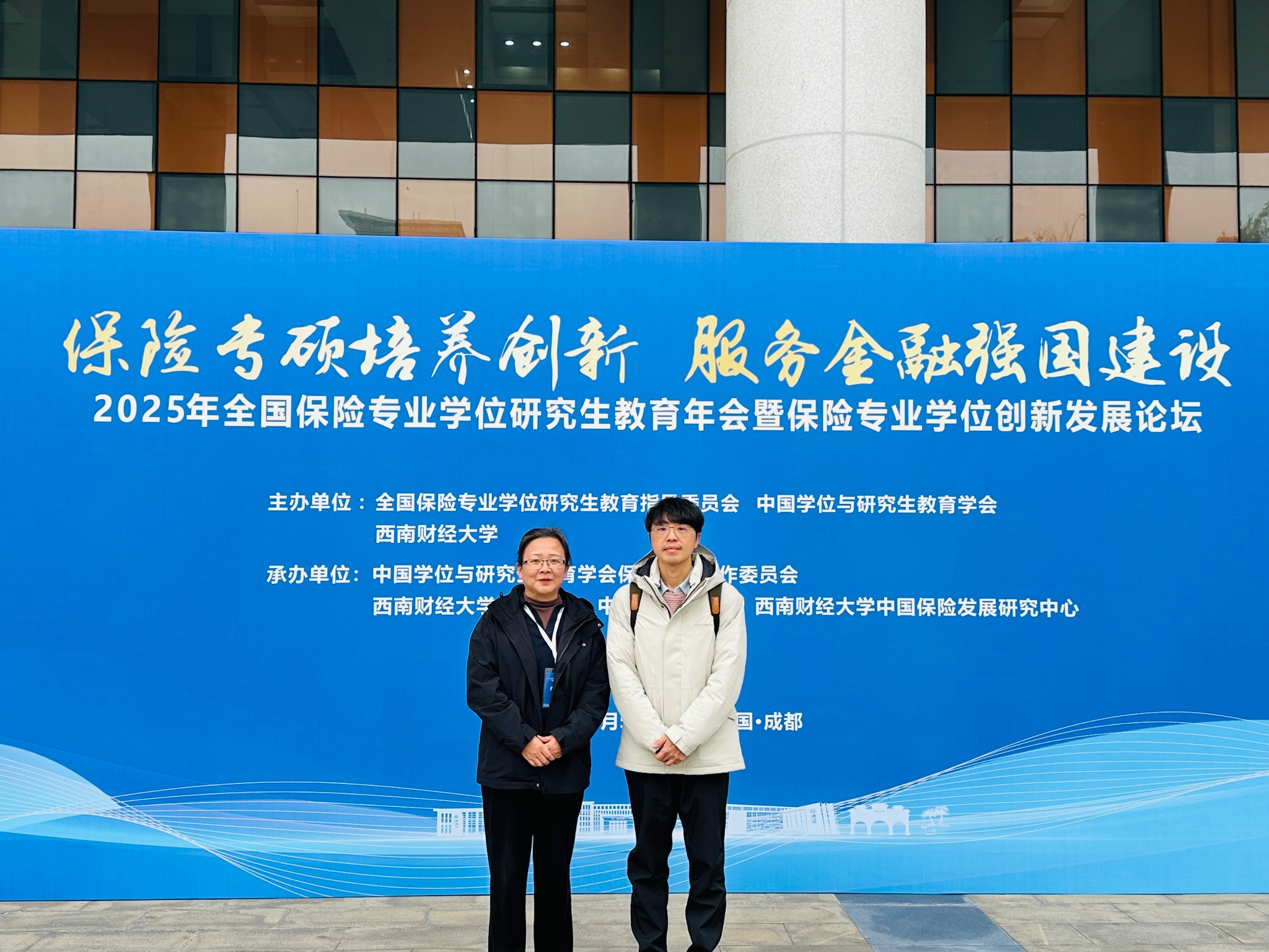 12月6日,2025年全国保险专业学位研究生教育年会暨保险专业学位创新发展论坛在西南财经大学柳林校区顺利召开。本次会议以“保险专硕培养创新 服务金融强国建设”为主题,汇聚了全国高校保险教育领域专家、行业领军者及培养单位代表,共同探讨保险专硕教育高质量发展新路径。公司孔月红副经理、黄志伟主任受邀参会,与业内同仁共话保险人才培养与行业协同发展。