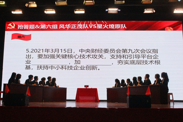 本网讯(通讯员 冷俊 李怡)为深入学习贯彻习近平总书记在党史学习教育动员大会上的重要讲话精神,落实向青年员工延伸公司党史教育活动的计划,经前期选拔遴选,由李怡和冷俊两名同学担任队长的员工团队代表球速体育于2021年5月14日14:00在老员工活动中心一号报告厅参与了主题为“学四史,悟初心,担使命”的知识竞赛A区复赛。