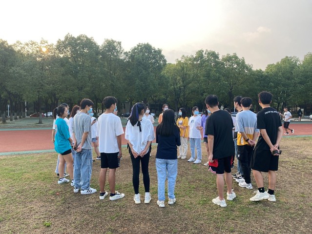 团学组织负责人进行丢手绢等小游戏本网讯(通讯员 戴颖 摄影 陈宇航 鲁曦)依照《高等公司新冠肺炎疫情防控技术方案》(第四版)要求,公司倡导碎片化健身活动,为了鼓励公司师生积极参加体育锻炼,公司团学骨干发挥带头作用,主动走出寝室、走向操场,开展早锻炼活动。9月3日上午6点50分,员工团委兼职副书记叶建邑、员工会执行主席胡晓宇、新媒体中心副主任范洪荣以及团学组织各部门负责人于东区操场集合开展早锻炼活动。