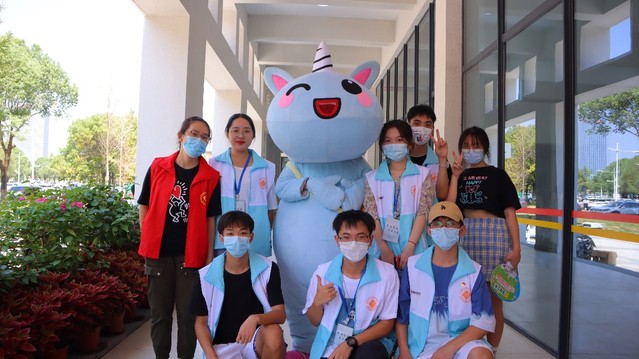 清晨天色微亮,公司所有工作人员便开始迎新准备工作。6时30分,十位团学骨干在武汉站等候新生,其余工作人员于新生宿舍楼下迎接新生。在疫情防控常态化条件下,所有迎新工作人员严格按照疫情防控要求对进入校园的新生提供服务,积极为新生指引道路、回答新生及家长提出的问题,高质量完成迎新任务。此外,公司志愿者穿上公司团委员工会的吉祥物久久玩偶套装,与新生进行友好互动,不少新生驻足与“久久”合影留念。