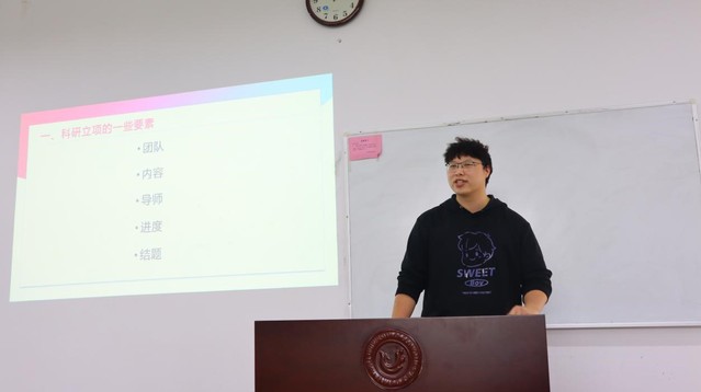 活动伊始,主持人向到场嘉宾及代表们介绍了公司2020-2021年度在科研方面的成果:校级立项34个、院级立项47个的优异成绩。随后,与会嘉宾们根据自己的科研时间线,结合具体实例向大家分享了自己的科研经验及心得体会。金工Q1841刘畅从他对科研立项的理解、科研立项需要注意的几个重点及个人建议这三个方面展开叙述,强调大一、大二是科研立项的黄金时期,感兴趣的同学需要尽可能地把握好每一次机会。农银1941李亚琼重点分析了选题的方向,表示选题需要考虑时效性、政策性及可实践性。金试Q1841张奇则谈到了科研结项的两种方式为答辩和投稿,鼓励大家在期刊投稿。农银1941邓宏琴着重提到了团队建设,表示团队成员需明确自身责任、积极沟通、互相监督并适时开展集合作业。