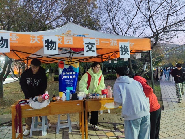 1118日活动如期举行,各位值班人员分工明确,有序进行活动物品收集、活动海报张贴、置换物品登记等工作,对每个路过的同学做详细的介绍。同学们以物会友,结识新伙伴。现场气氛活跃,吸引了众多同学驻足,大部分同学置换到自己中意的物品,使箱底闲置的物品变成了宝藏。