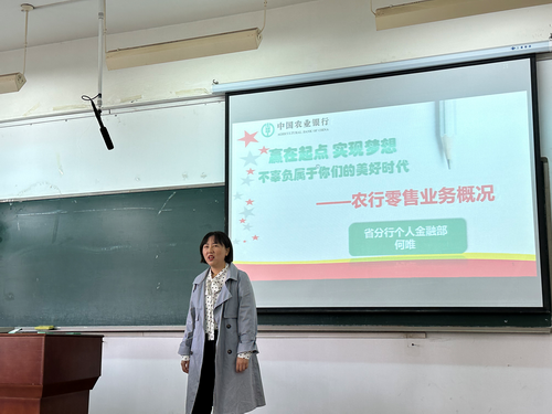 何老师的讲课主题是“农行零售业务概况”。在本次约三小时的授课中,何老师首先简介了农行零售业务现状,而后列举大量实例深化同学们对于零售业务的理解。