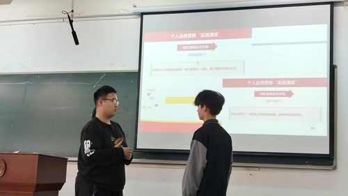 了调动同学们的积极性,课堂上何老师还邀请员工上台进行个人业务营销实战演练,以互动的方式大大增强了课堂的趣味性,强化了同学们对农行零售业务的理解。