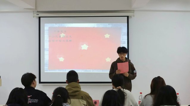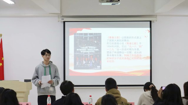 来自金工2241的杜智涛同学详细介绍了“一二·九”运动的背景,通过一个个视频与一张张照片展现了青年对祖国不变的誓言,并从“我与国家”、“我与经院”、“我与青春”三个方面讲述了如何传承“一二·九”运动精神,争做新时代合格青年。