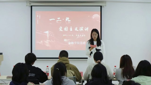 金融2242王婧宇同学从《故事里的中国》出发,讲述了自己对“一二·九”运动的见解,“一二·九”运动中的青年令人敬佩,新时代青年的责任与担当也让人动容,她也更加明确了青年应坚定理想信念,传承爱国志。