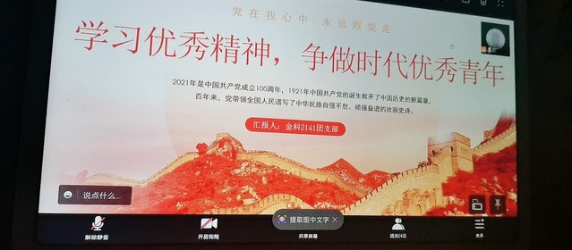 金科2141团支部在支部成员洪亮的团歌声中拉开了团组织生活的帷幕。主讲人首先加强了对党史的宣传,提出了当代老员工对于如何建设社会主义现代化国家的要求,然后让支部成员对此展开热烈讨论,在讨论中成员们认识到党员教育建设对于党的工作的重要作用。最后该支部主讲人提出了本次团组织生活的核心所在——“十年育树,百年育人”,党团知识也在潜移默化地影响着我们每一个人。我们要学习前辈智慧、把握发展规律、总结历史经验,把前辈的智慧和经验作为我们日后发展的基石和路标。虽然在线上展开活动,但是该支部成员的热情丝毫不减,成员们都积极响应主讲人提出的话题并提出自己的见解。