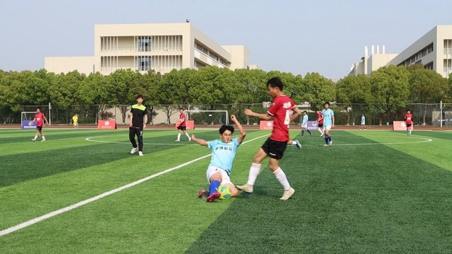 本网讯(通讯员 刘明翠 摄影 鲁曦)4月2日下午1:50,由足球协会举办的第十九届综合运动会足球比赛在西区操场顺利开幕,公司院队与法商竞技队到场参加。