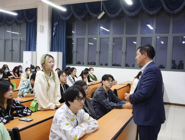 随后,许传华以“我的大学”为切入点,结合自己如何学好专业知识,培养非专业兴趣等方面成长经历讲述了自己的大学年代。他告诉同学们“我将要在大学里收获什么?”“我的人生方向在哪里?”他希望每一个同学能够清楚地知道“最初为什么开始?”“最终要到哪里去?”在亲切的话语和殷切的期盼中深情寄望同学们:一是保持勤奋与毅力,端正学习态度,始终把学习当作安身立命之本,不刚则惰,不恒则退。二是在勤于实践中锻炼成才,在知与行、理论与实践的关系中,重视行、重视实践,不善行、不善实践,即使满腹经纶、学富五车,也可能于事无补、难有作为。三是从尊重个性向学会欣赏他人转变,在崇尚自己个性的过程中,应该学会欣赏,学习他人的优点,取他人之长,补己之短,从而达到博众人之所长、强自身之优势。四是守得住孤独寂寞、经得起诱惑、耐得起摔打,不驰于空想、不骛于虚声,不要相信所谓的成功捷径。