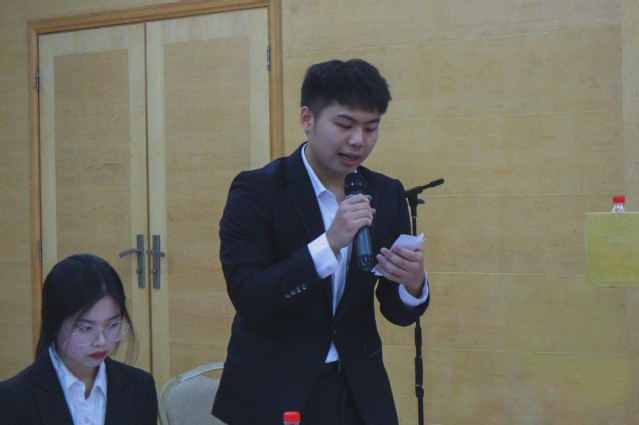 在比赛过程中,从半决赛中脱颖而出的两支队伍围绕“当今中国应不应该取消商品房预售制度”这一辩题展开了激烈的角逐,首先由正方一辩开篇立论,条理清晰,逻辑严密,反方辩友亦不遑多让,锋芒初现。比赛现场气氛热烈,双方辩手在立论、驳论、对辩、盘问、结辩等各环节中思路清晰、唇枪舌战、据理力争、引经据典、各抒己见,比赛达到白热化阶段。辩论赛寓教于乐、发人深省,特别是在相互奇袭、自由辩论环节,双方针对每一个字眼、每一个逻辑展开激烈争辩,思维敏捷,抓住对方的漏洞巧妙反驳,上演了一场精彩的“头脑风暴”。比赛现场节奏紧密,不同的声音碰撞在一起,带给人思想上的盛宴,同时也令人由衷地赞叹辩手们敏捷而强大的的思辨能力与逻辑能力。