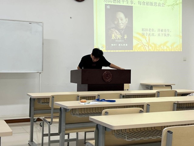 “功高德隆平生事,每食稻饭思袁公。”金融2144团支部以“袁隆平有两个梦——‘禾下乘凉梦’和‘杂交水稻覆盖全球梦’”为主题展开活动。主讲人首先讲述了“禾下乘凉梦”与“杂交水稻覆盖全球梦”的含义,又向支部成员分享了袁隆平院士的生平以及他对当今世界产生的巨大影响。“一生修道杂交稻,万家食粮中国粮。”中国人有信心把饭碗牢牢端在自己手中,这是袁隆平先生留给国人的遗产。曾几何时,中国人还为吃饱饭而犯愁。袁老潜心研究一辈子的杂交稻让人们不再饿肚子,并告诉世界“中国人能够养活自己”。最后,主讲人总结作为新时代青年,支部成员要秉承袁老遗志,不负殷殷重托,努力成长为德智体美劳全面发展的社会主义建设者和接班人,让中华民族伟大复兴在奋斗中梦想成真!