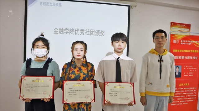 最终金融心协、金融青协、新农村社团在此次优秀社团答辩中获得前三名。赵坤明老师与前三名社团代表合影留念。
