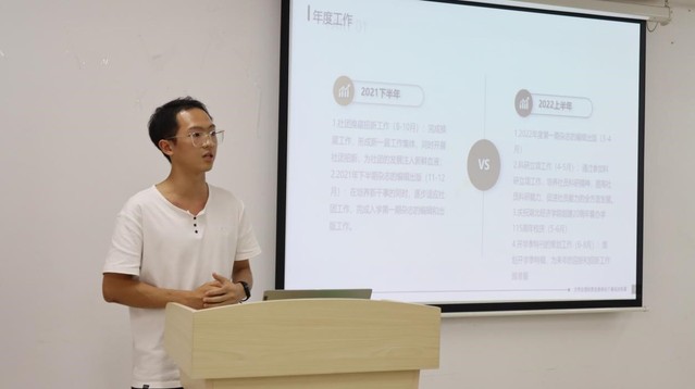 答辩伊始,冉欧雯介绍了此次社团答辩的流程,公布了各个社团的日常考核分数并抽签决定了社团答辩的顺序。