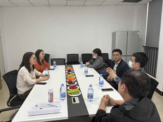 接着,周文一行到武大园一路巨成大厦看望在这里实习的7名同学。在该公司,公司领导一行参观了该公司的办公场所,与该公司部门负责人、员工社会指导老师及员工一起进行了座谈。座谈会上,员工介绍了实习情况,社会导师介绍了员工的实习表现,对实习员工的表现给与了充分肯定,希望实习员工能留下来共同见证公司的发展。公司负责人介绍了公司的运营情况、业务范围、薪资待遇等。公司领导听完汇报后,对该公司为公司员工提供的实习帮助表达了感谢!