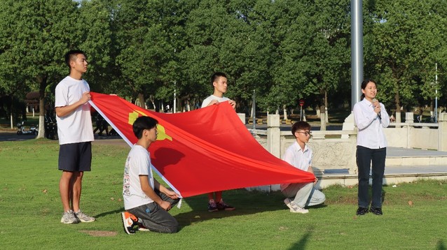 迎着朝阳的光线,国旗在护卫队的护送下庄重入场,在同学们的注视下,五星红旗随乐声缓缓上升至旗杆顶部。紧接着,在员工党员代表的领誓下,公司员工党员重温了入党誓词。随后,信工公司员工代表和员工工作处处长进行国旗下讲话。在讲话中,商处长带领同学们重温了伟大的建党精神,并结合志愿服务、军训会操等对建党精神的内涵进行了解读。