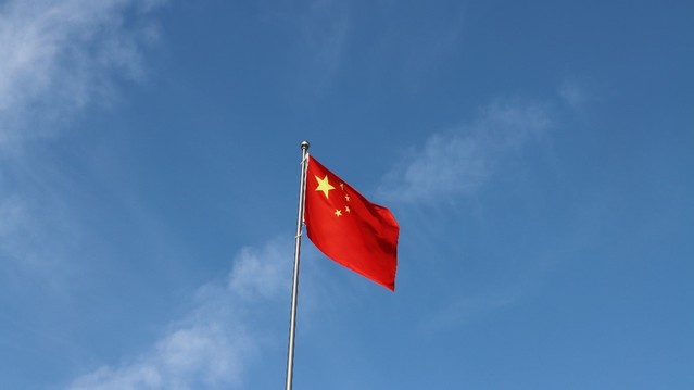 (图为国旗飘扬在空中)