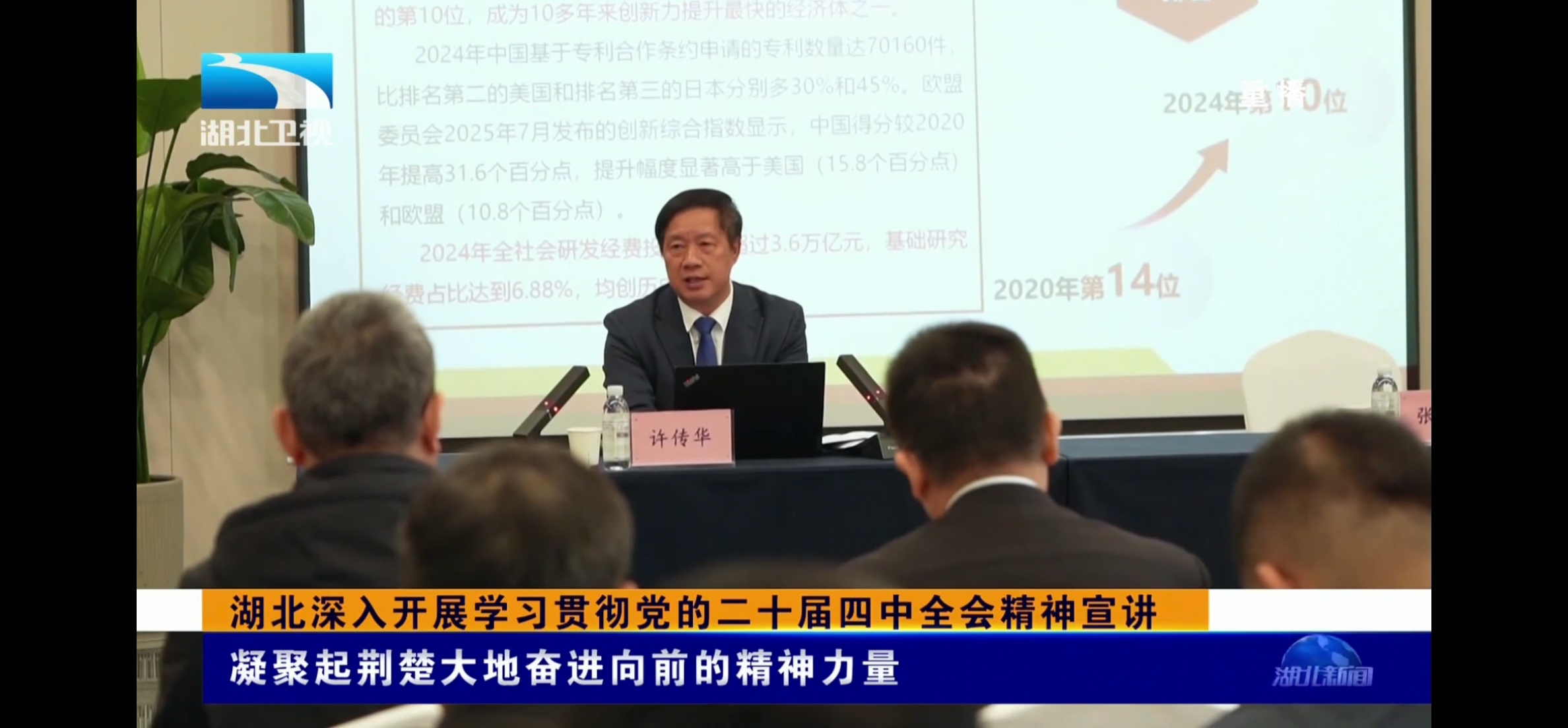 11月26日,学习贯彻党的二十届四中全会精神宣讲报告会在长江财险举行。省委宣讲团成员、湖北经济公司党委常委、“湖北名师工作室”主持人、数字金融创新湖北省重点实验室主任许传华教授作宣讲报告。