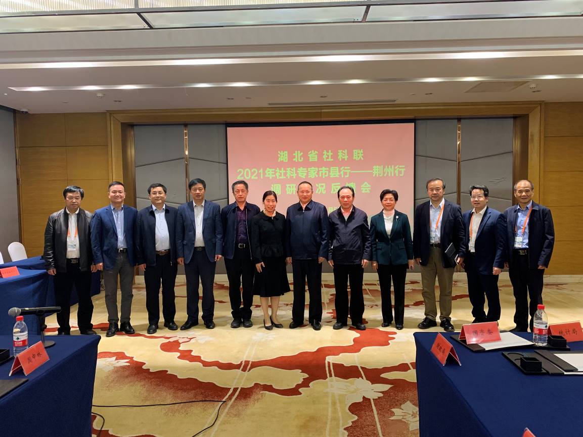 11月1-5日,湖北省社会科学界联合会组织专家开展了2021年社科专家市县调研工作。专家组由省社科联党组书记喻立平、副主席张明新,以及公司党委常委许传华教授、武汉大学邹薇教授、武汉理工大学魏龙教授、武汉科技大学余淑均教授、长江大学韦鸿教授等领导和专家学者组成。荆州市委书记吴锦、市长周志红、常务副市长刘辉文、副市长孙玉秋,市直有关单位主要负责人参加了调研情况反馈会。